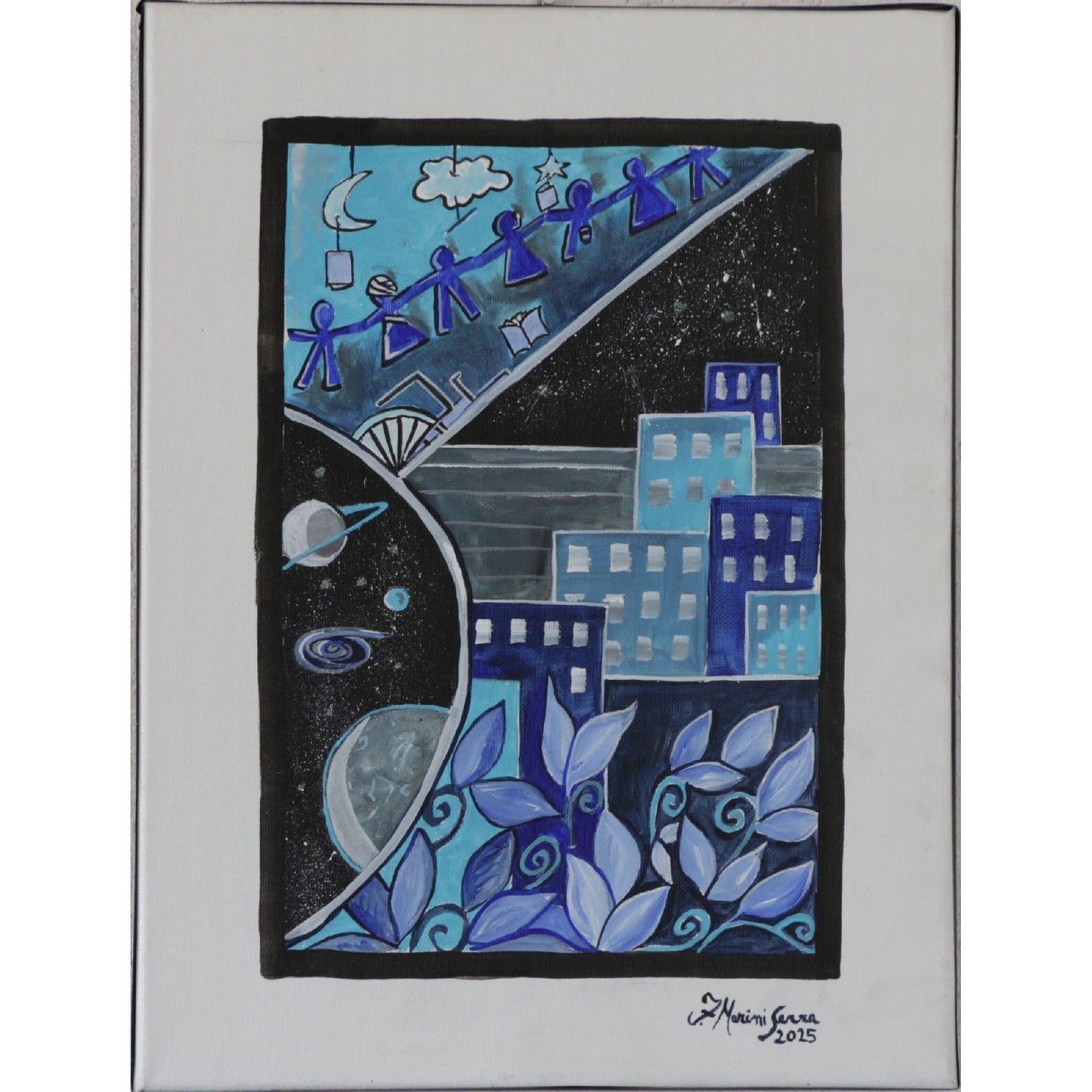 La frenesia della vita moderna e i valori trasmessi da media e social,fanno apparire inutile e banale chiunque e qualsiasi cosa che non siaimmediatamente produttiva e redditizia. Ma quanto insignificanti risultano lericchezze, il potere e la bellezza culturalmente accettata oggi se viste con lagiusta distanza. Uno sguardo aperto sul cosmo ci ricorda quanto insignificantesia questa continua corsa all’oro vista dallo spazio, e quanto vitali epreziose siano invece le cose che trascuriamo, la natura (foglie e tralci) checi permette di respirare e nutrirci, il sorriso e i sogni di un bambino o di unuomo fragile, magari disabile, che può in quel sogno racchiudere e dischiuderea noi la ricchezza della bellezza dell’universo intero.